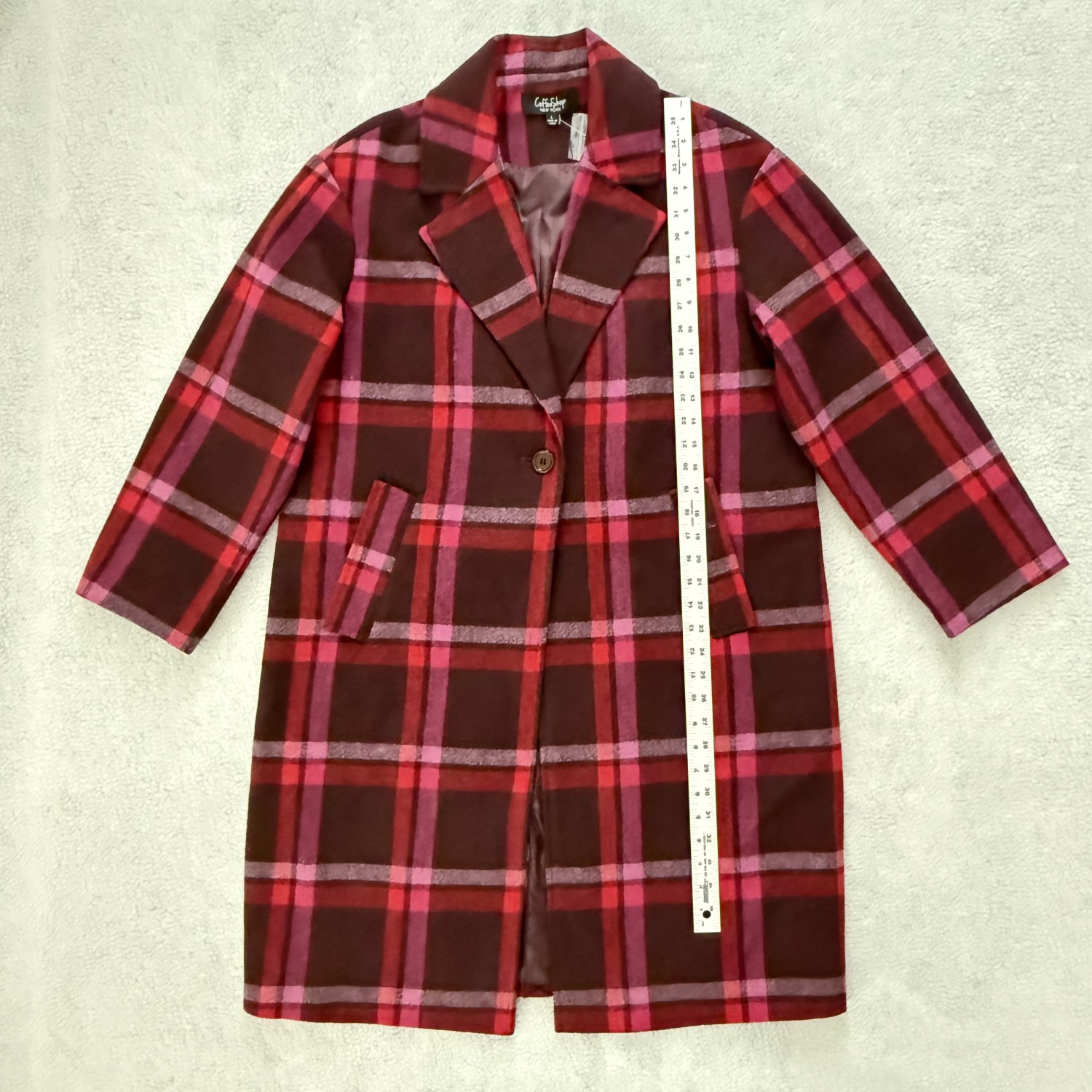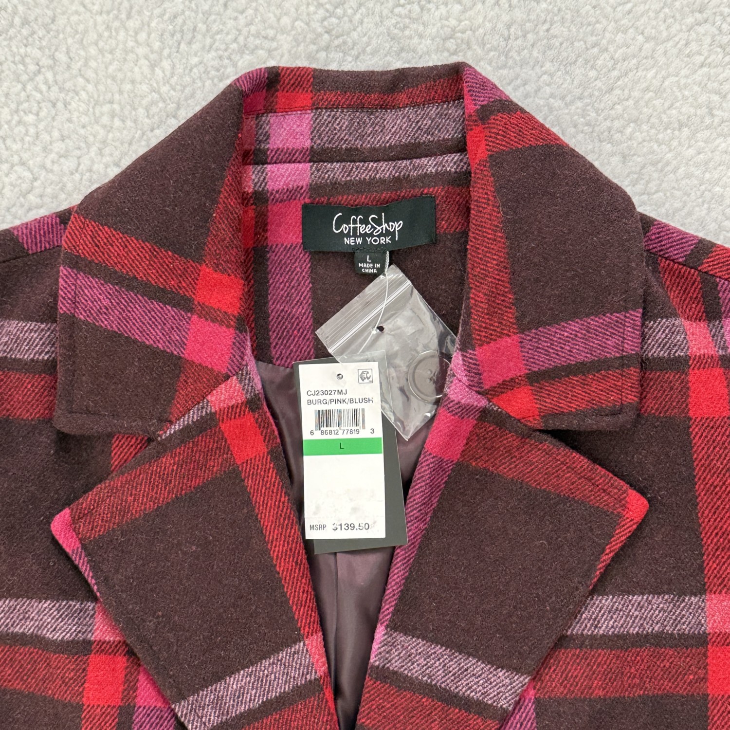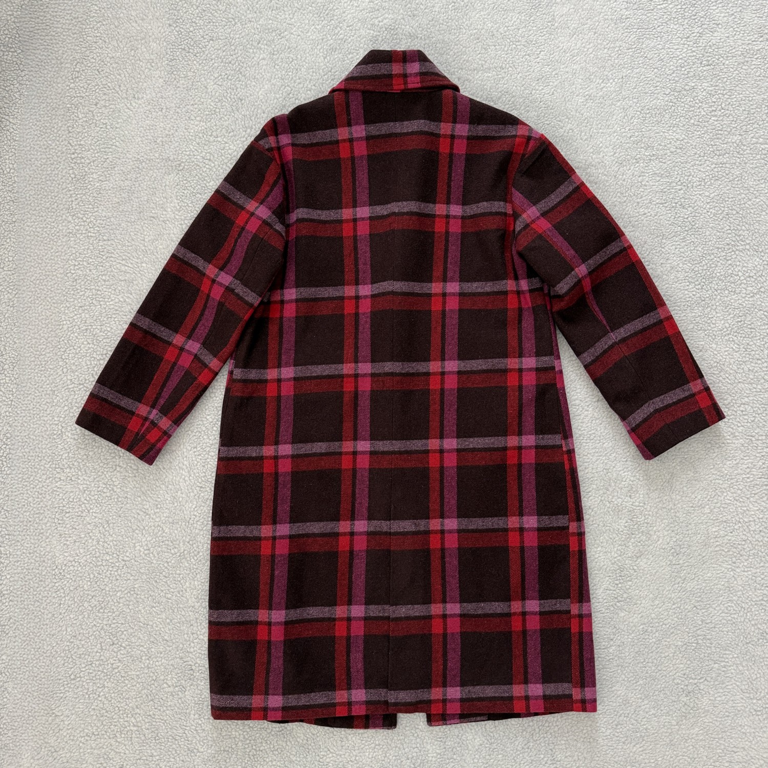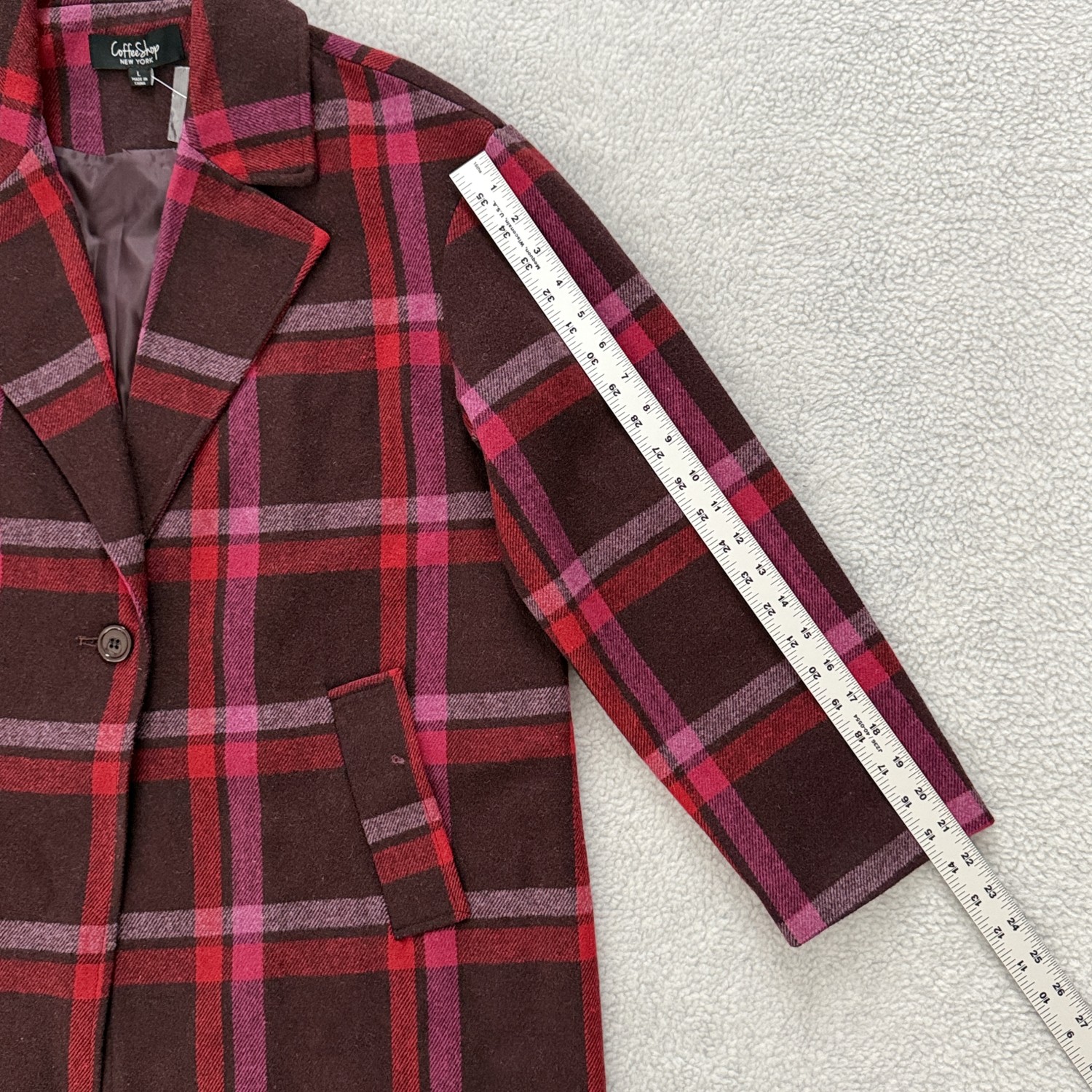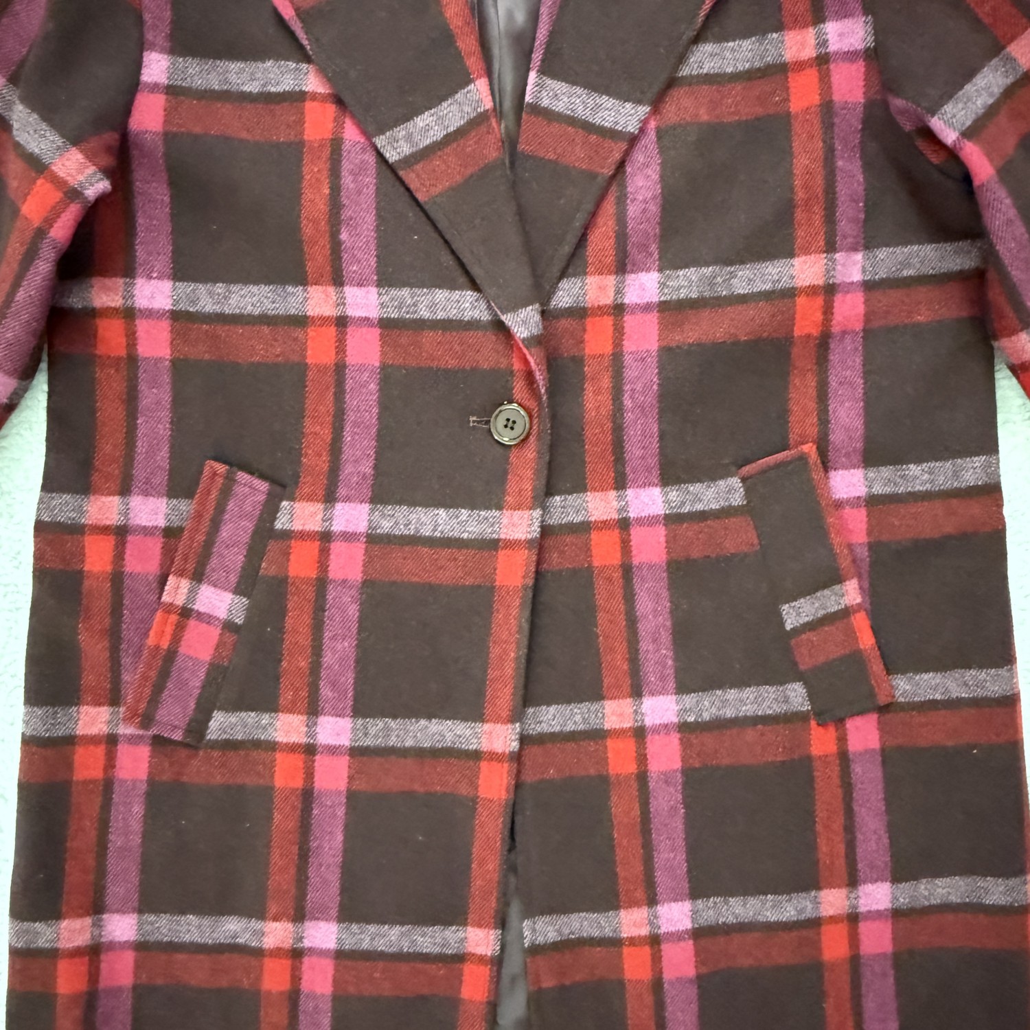 COFFEE SHOP LONG SINGLE BREASTED PLAID JACKET – LARGE