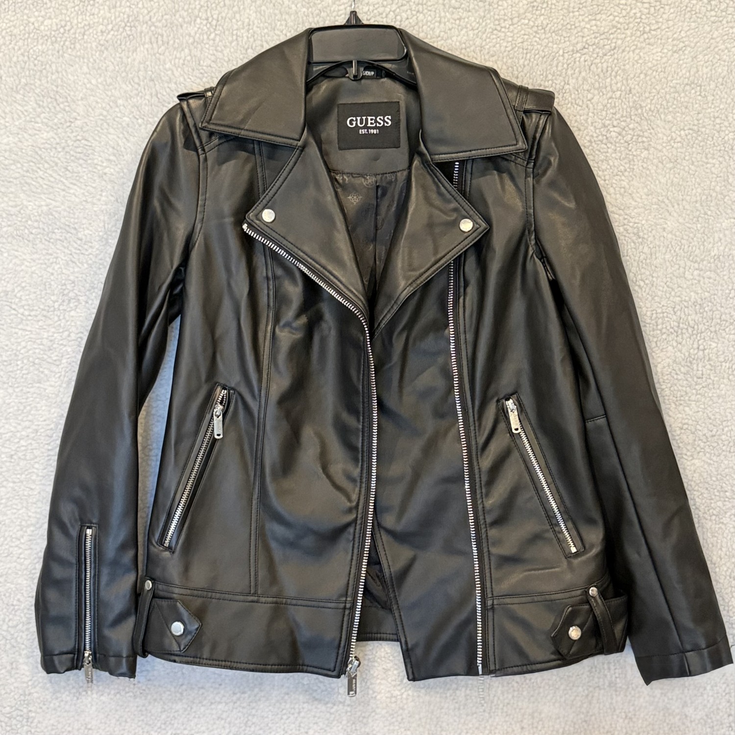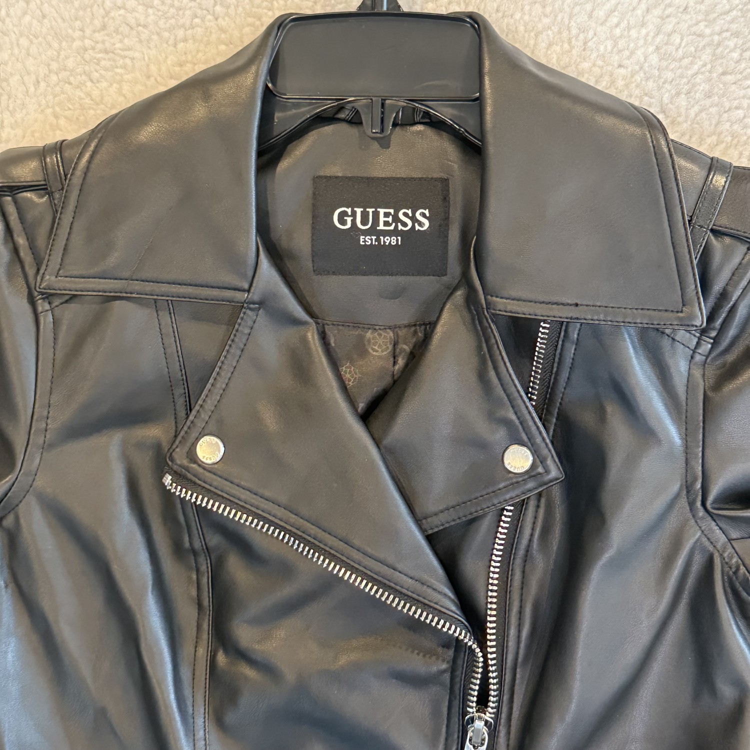 DESCRIPTION: GUESS FAUX LEATHER ASYMMETRICAL BIKER JACKET