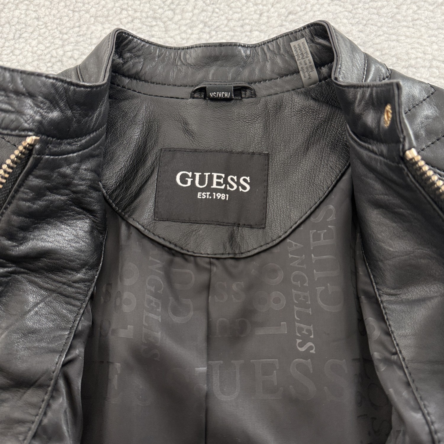 GUESS WOMENS QUILTED SHOULDER LEATHER JACKET XS