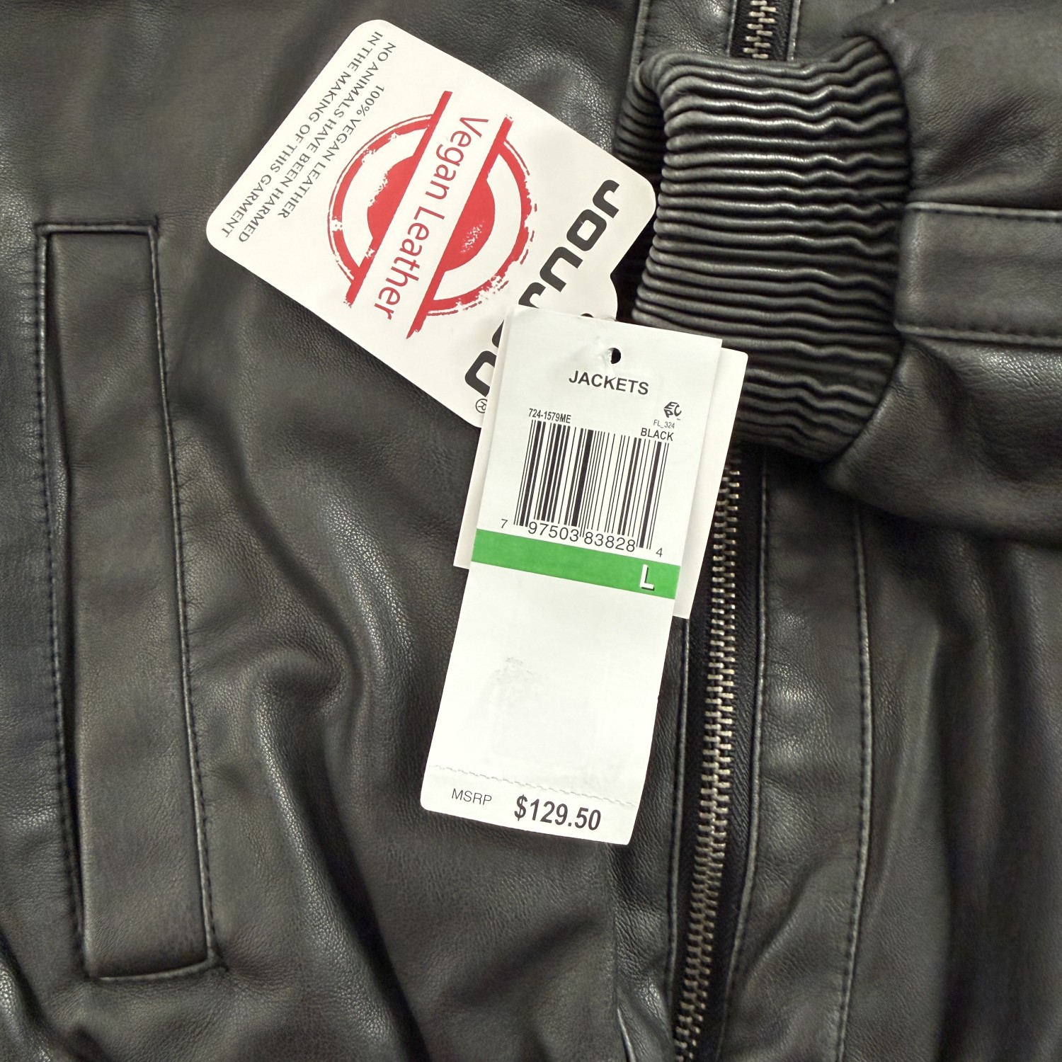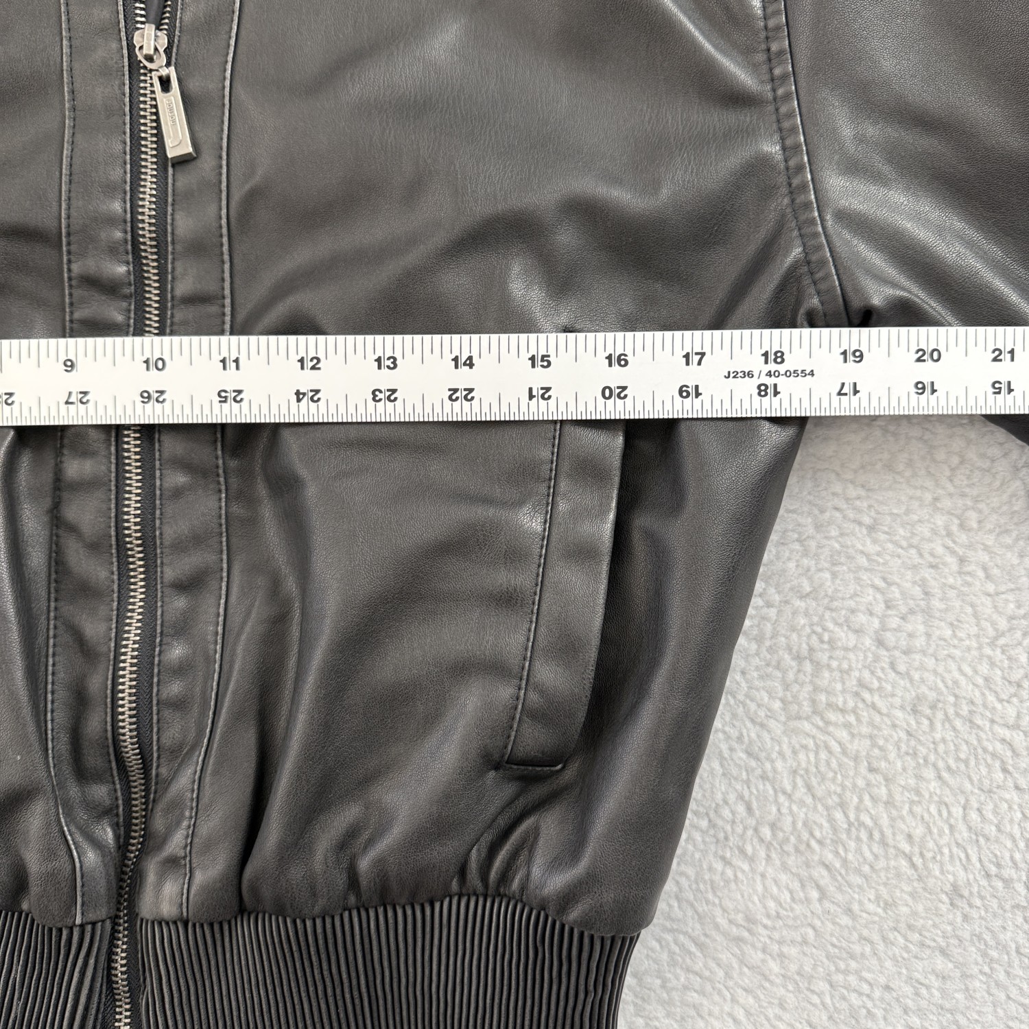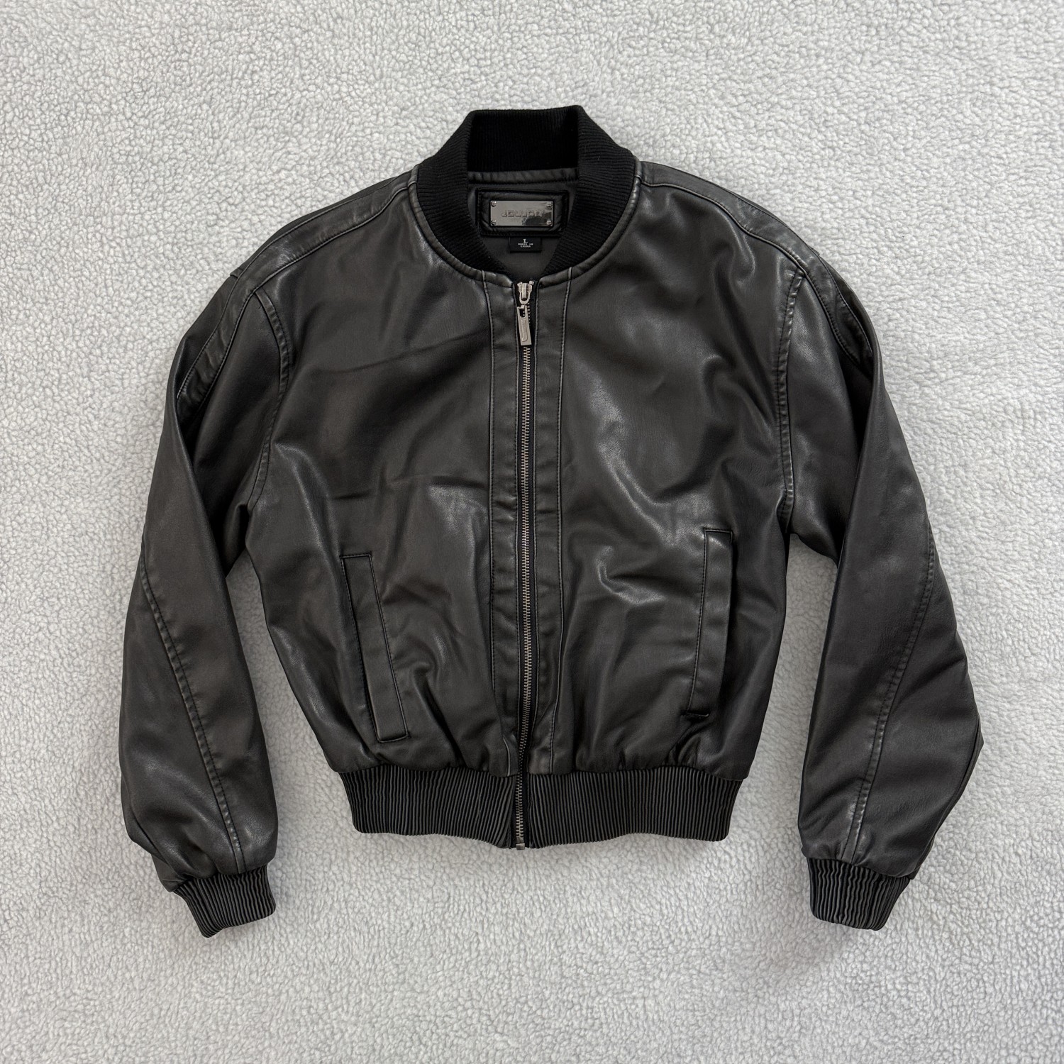 DESCRIPTION:  FAUX DISTRESSED LEATHER JACKET
