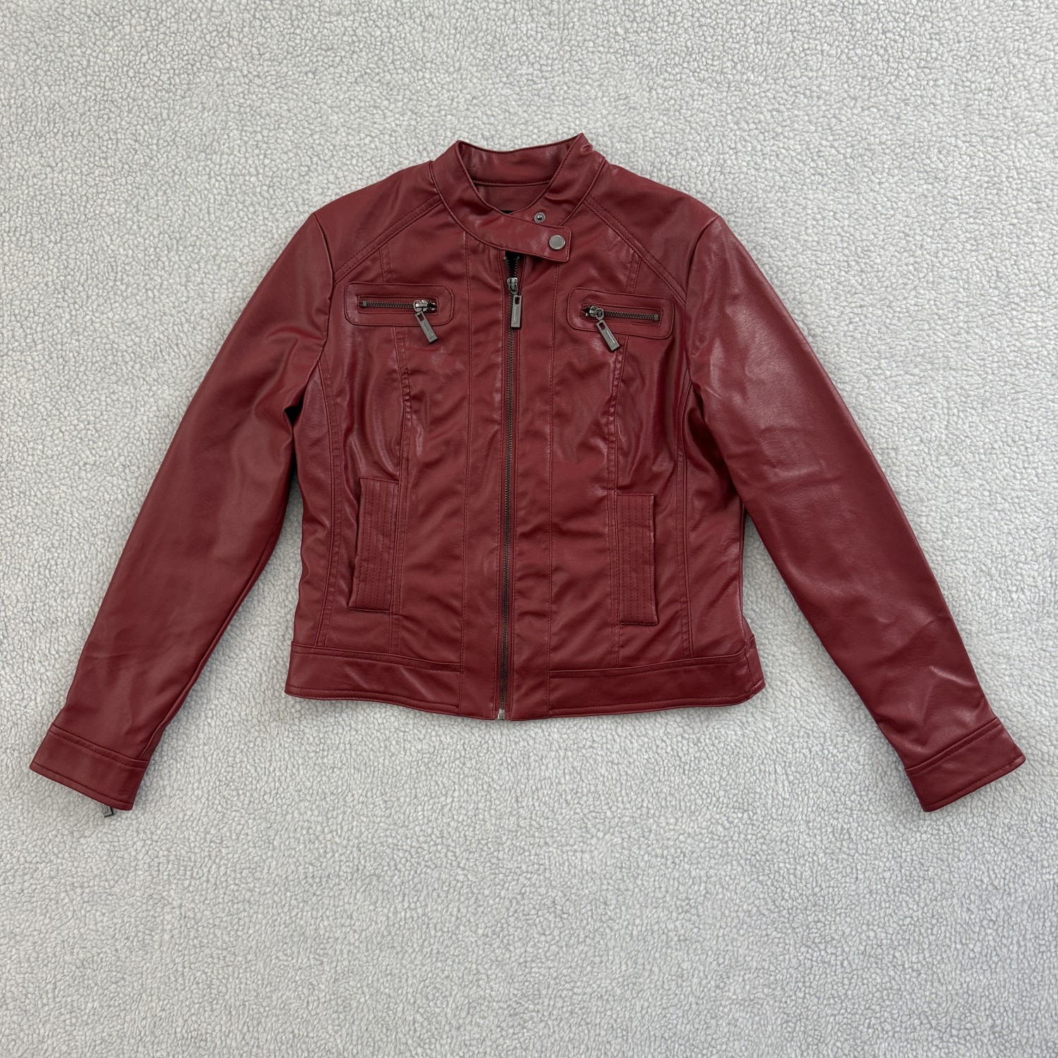 DESCRIPTION: FAUX LEATHER HOODED JACKET