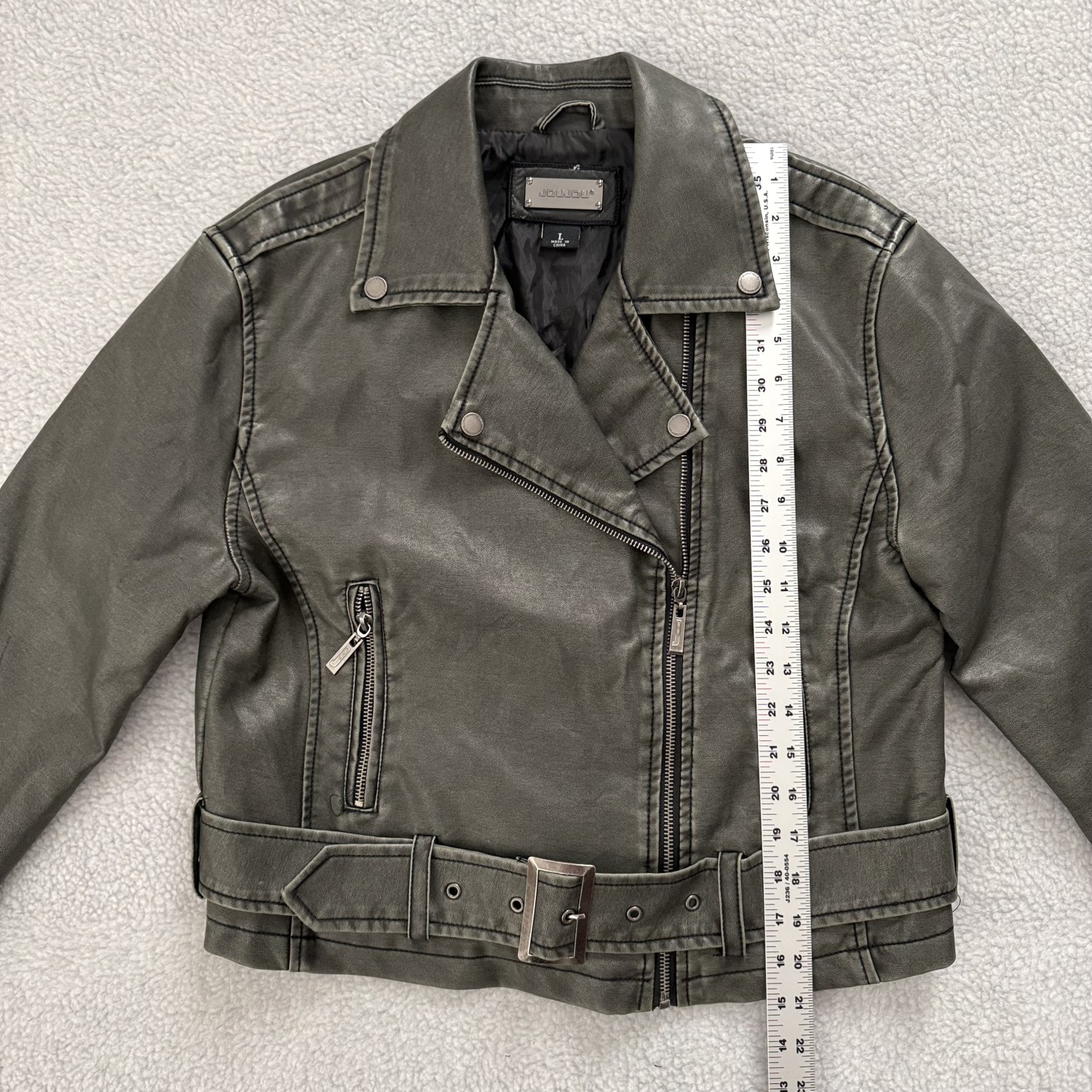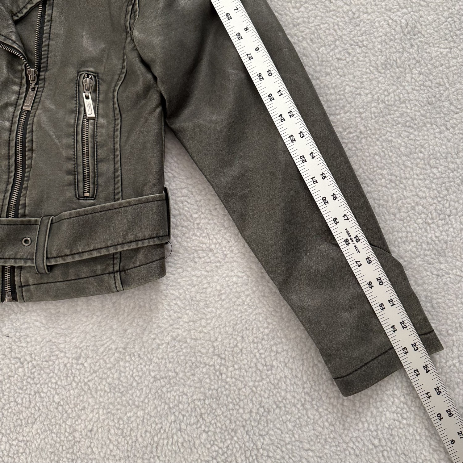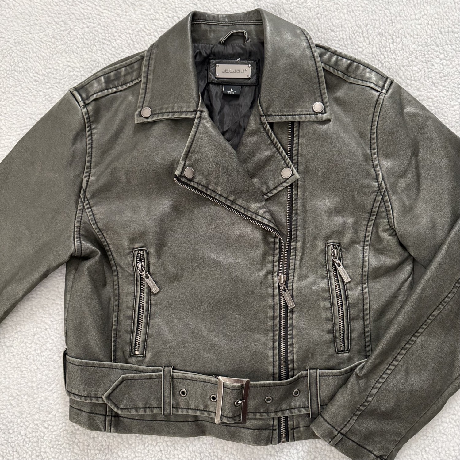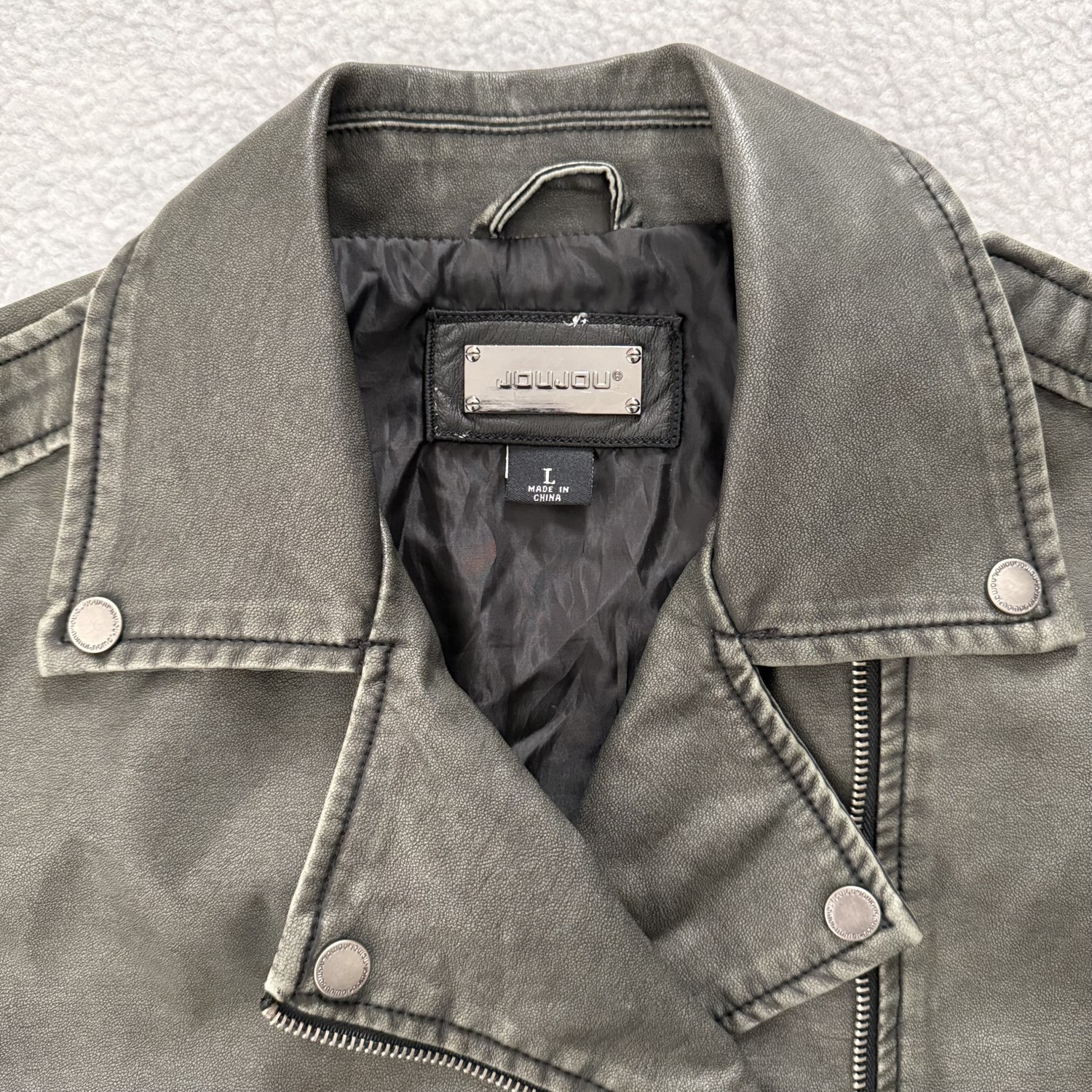 DESCRIPTION: DISTRESSED FAUX LEATHER JACKET