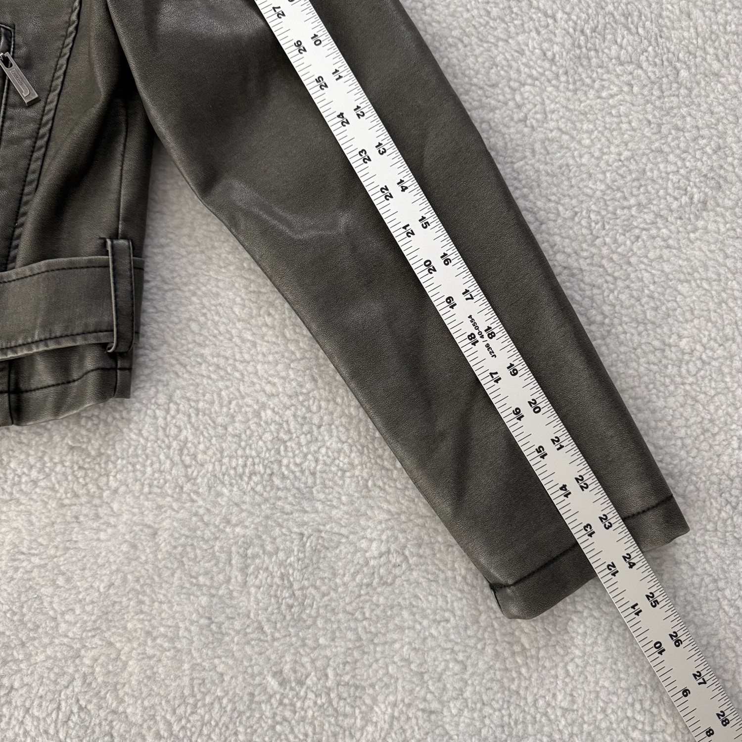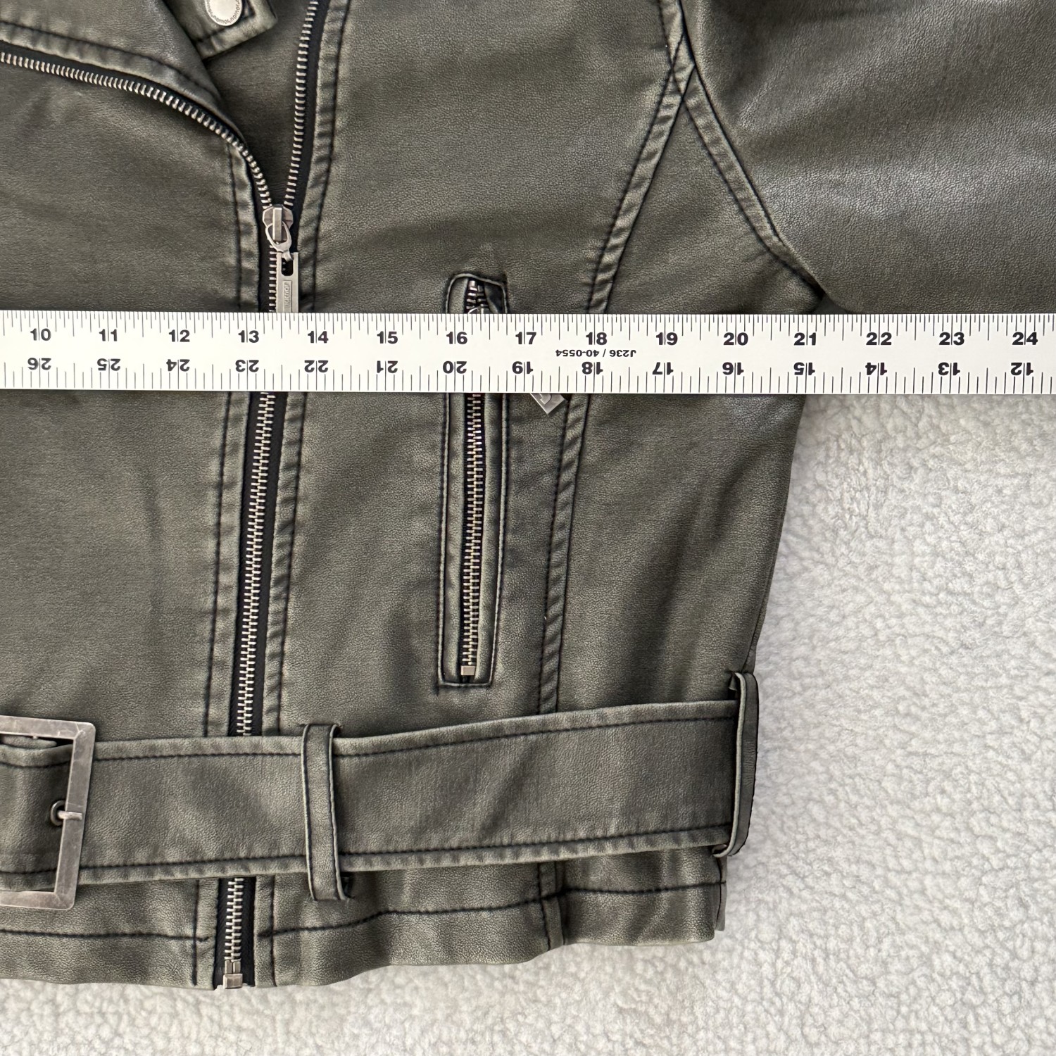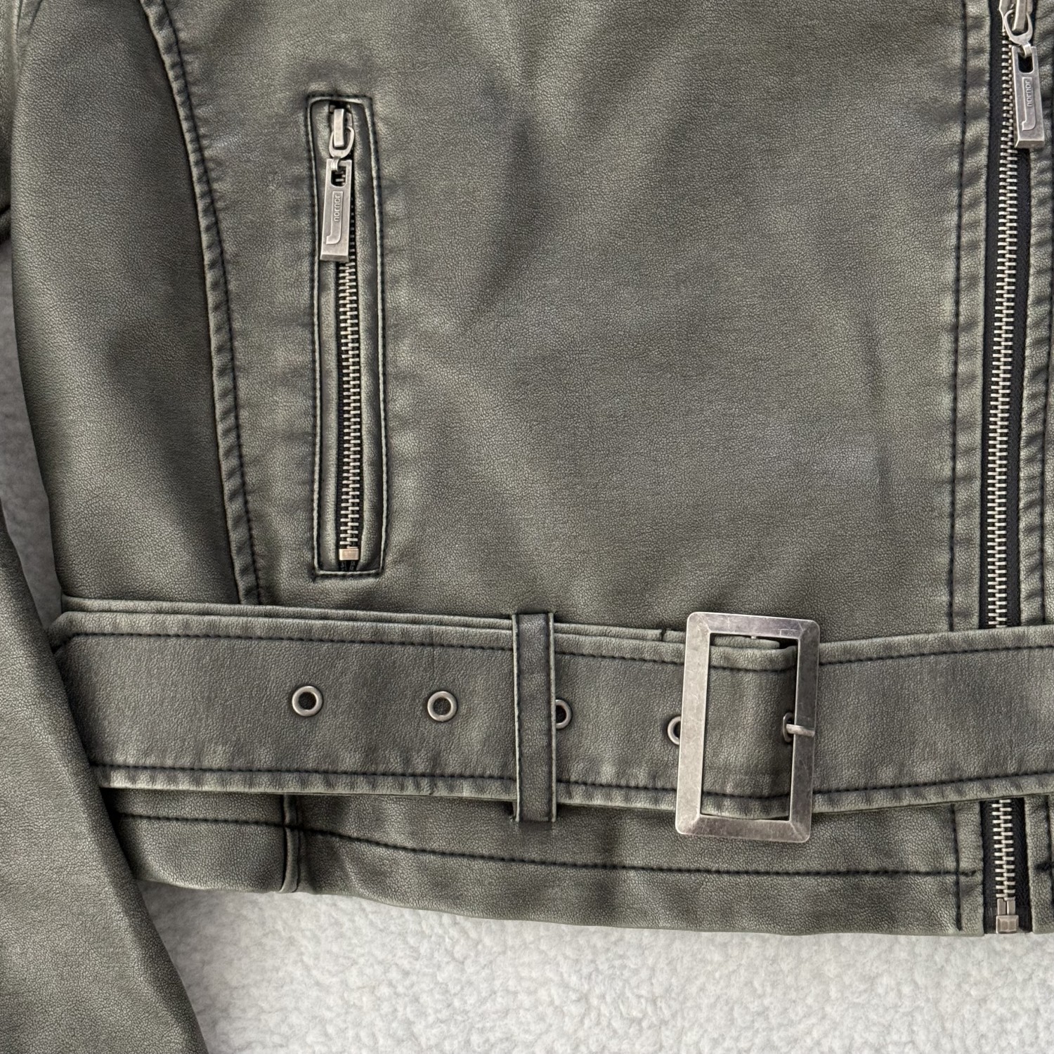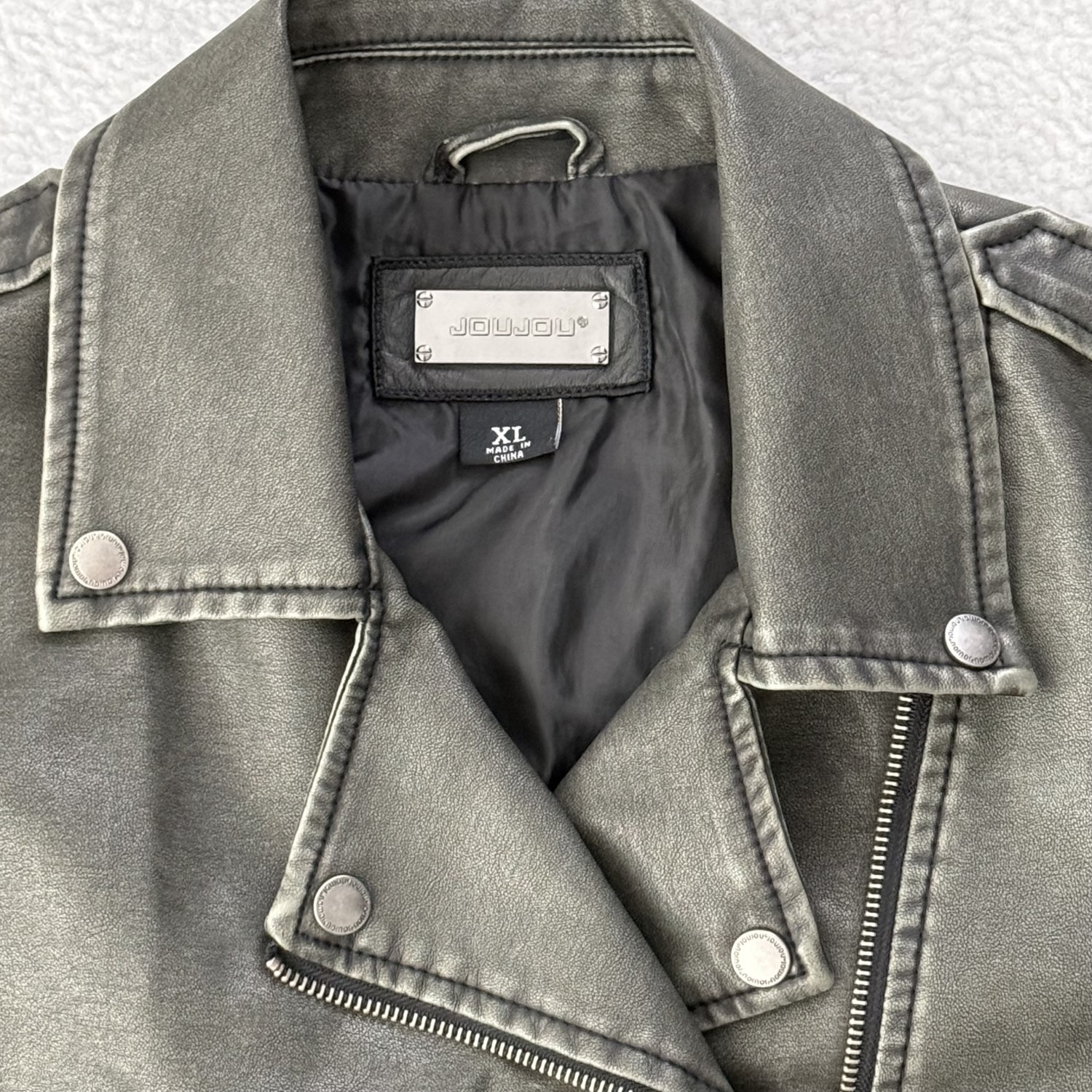 DESCRIPTION: DISTRESSED FAUX LEATHER JACKET