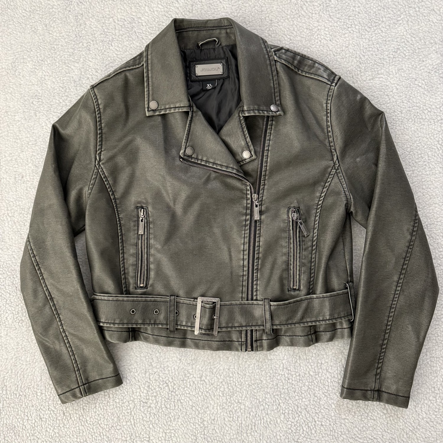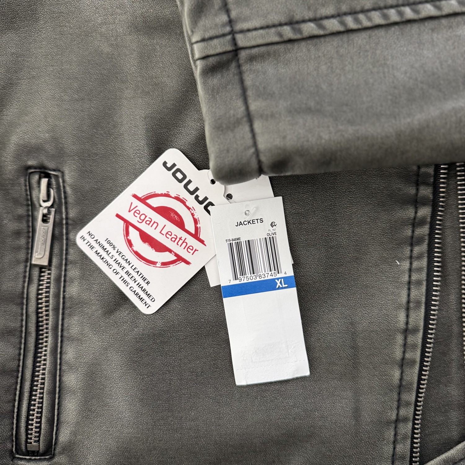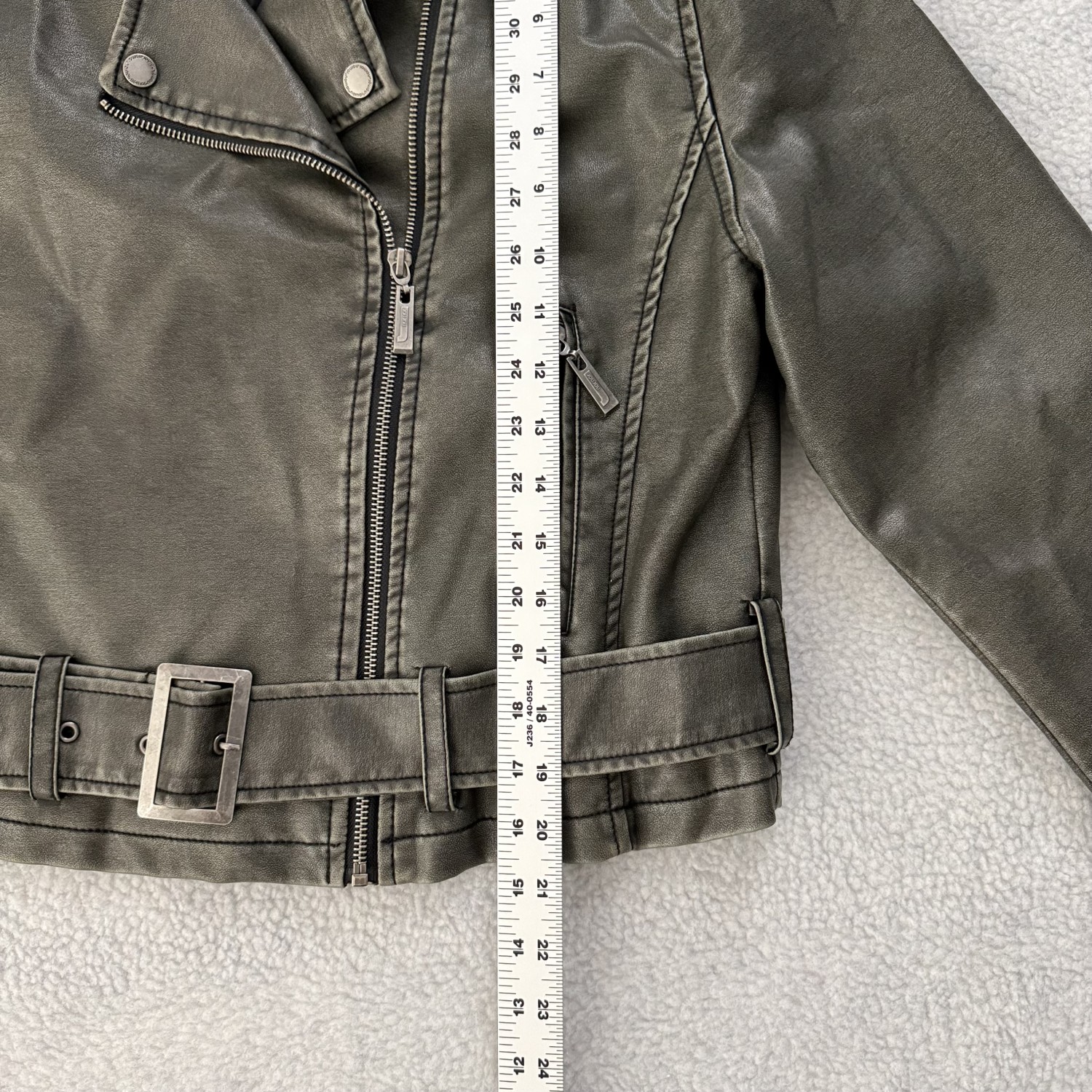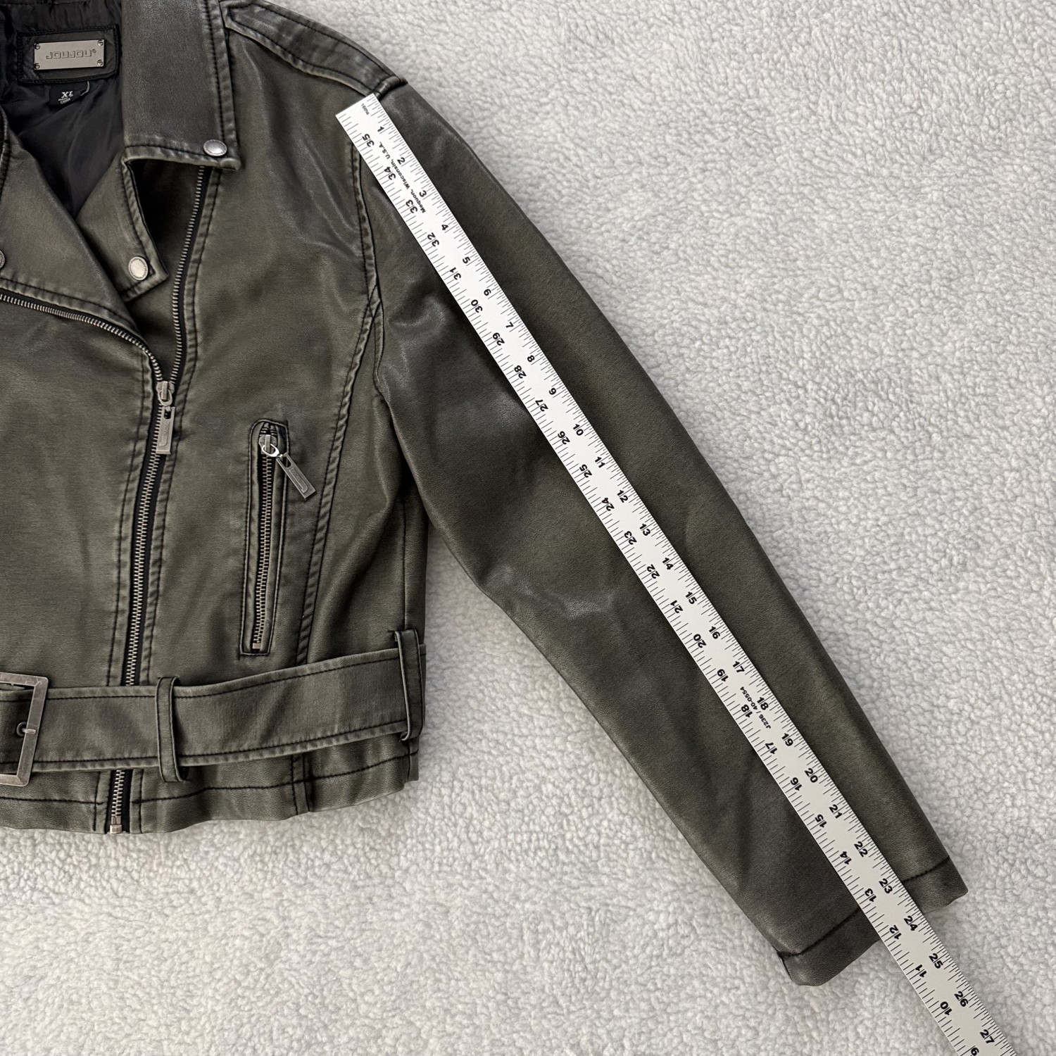 DESCRIPTION: DISTRESSED FAUX LEATHER JACKET