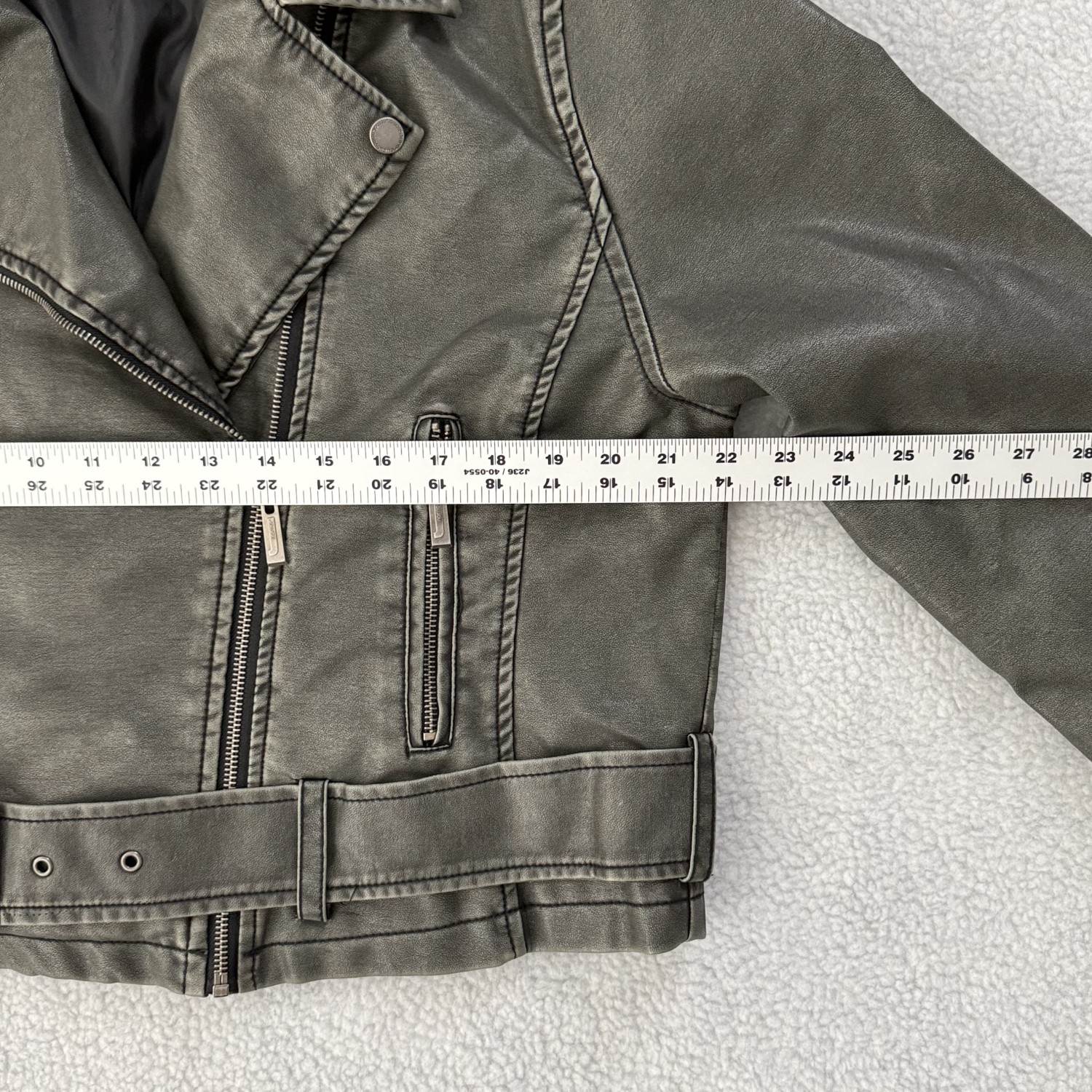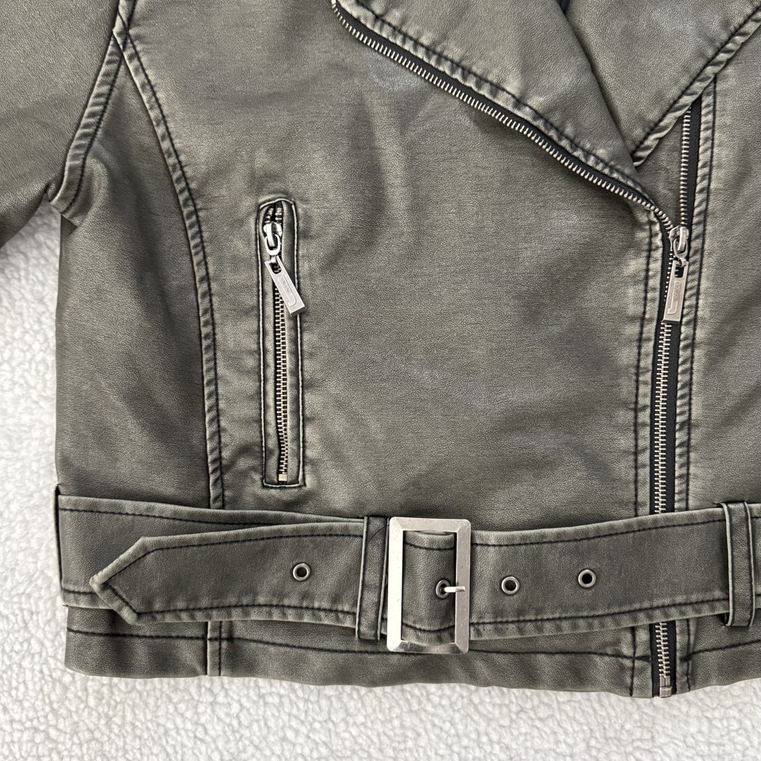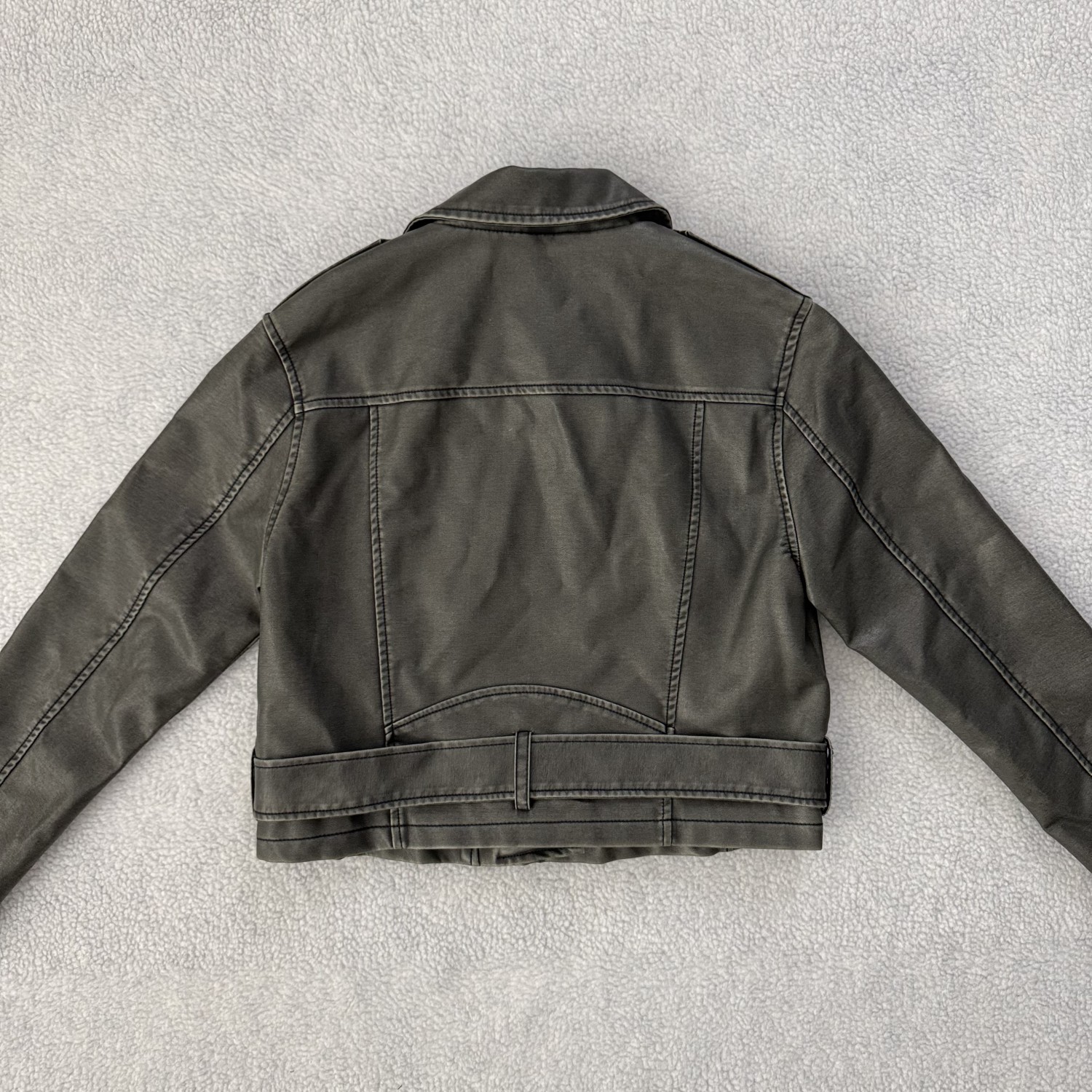 DESCRIPTION: DISTRESSED FAUX LEATHER JACKET