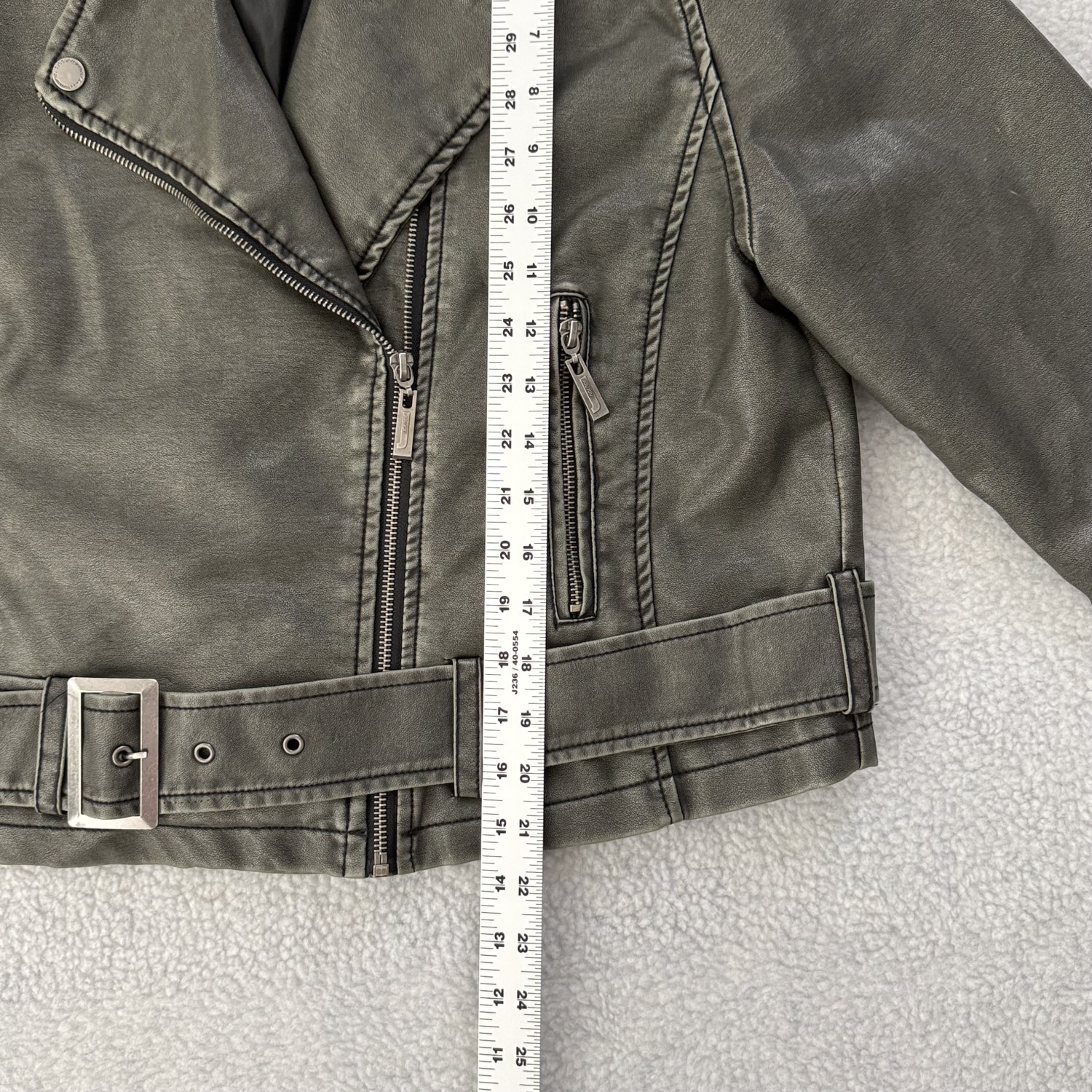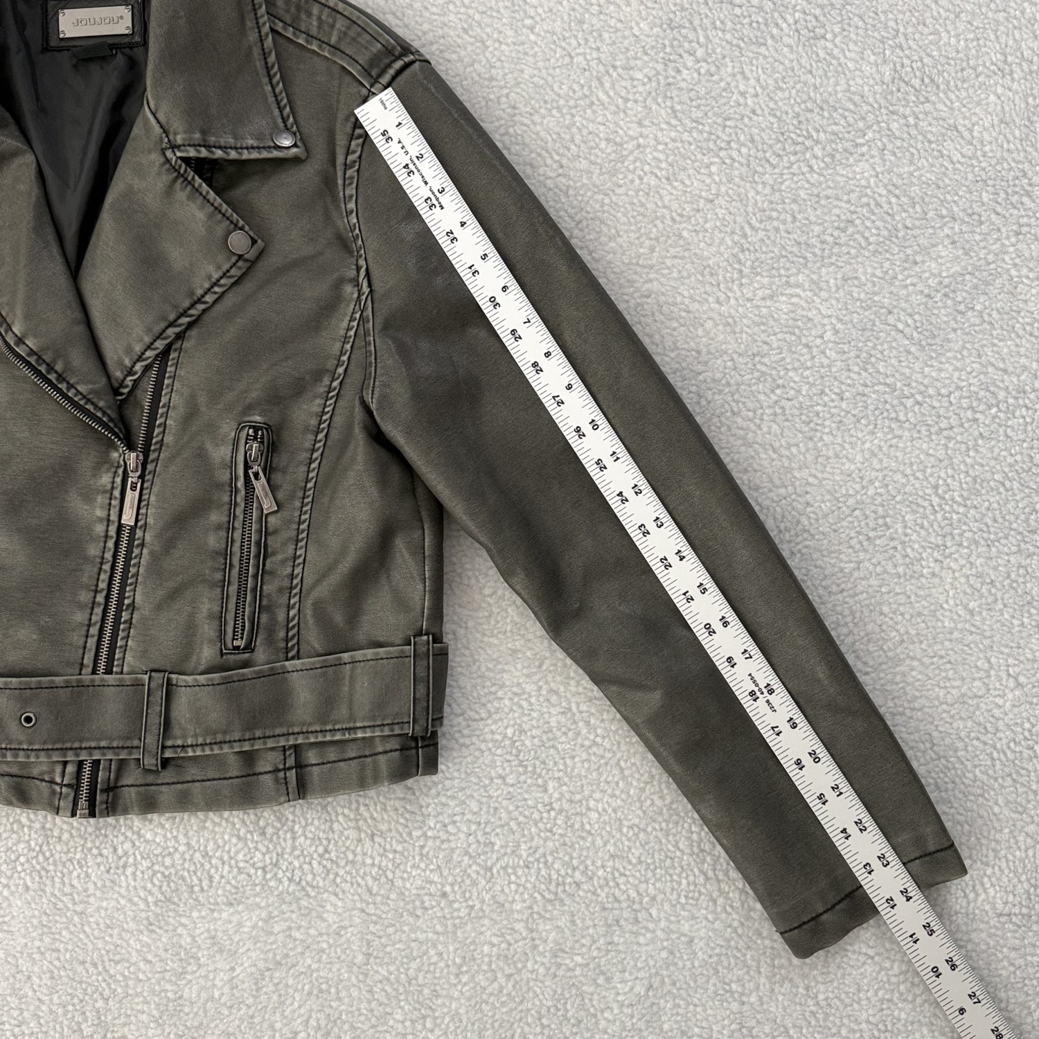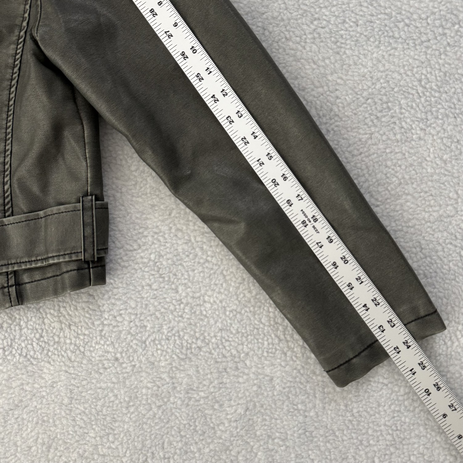 DESCRIPTION: DISTRESSED FAUX LEATHER JACKET