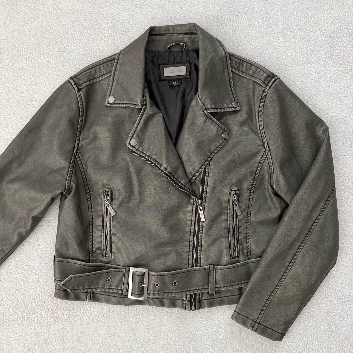 JOUJOU DISTRESSED FAUX LEATHER JACKET-XXLARGE